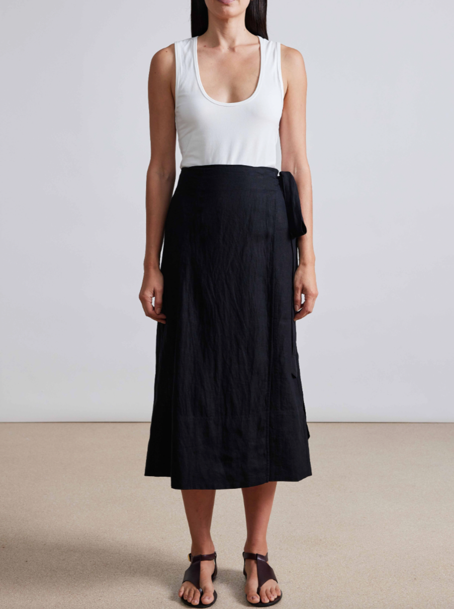 - Straight silhouette, tie at underlayer pulls through small slit at wearer’s right side and wraps around back, ties tie at the left side front