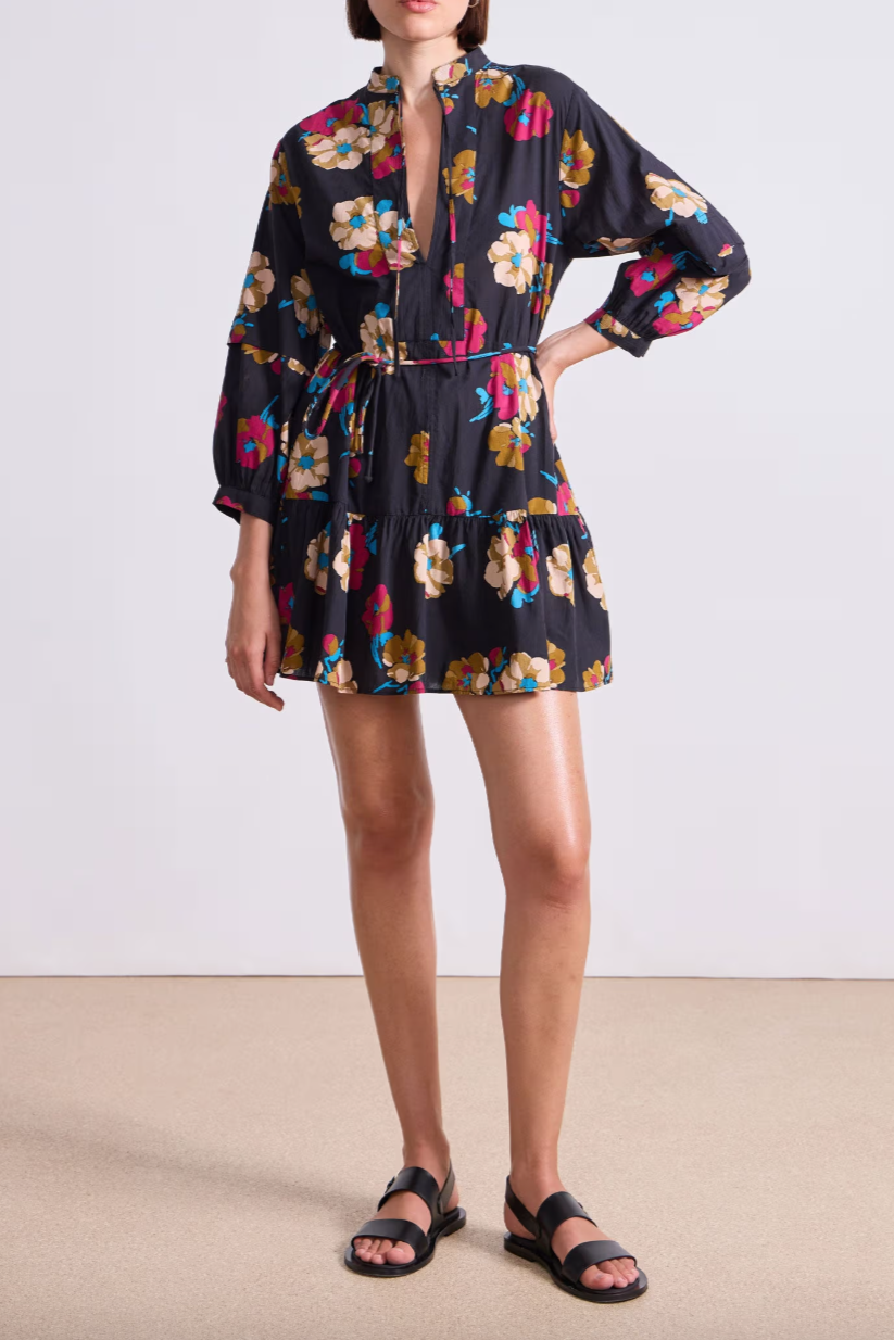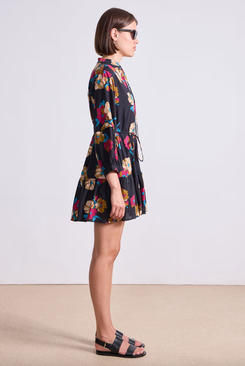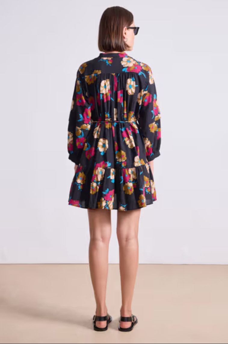 - A line silhouette, 3/4 sleeves, single tiered skirt, removable self tie belt included