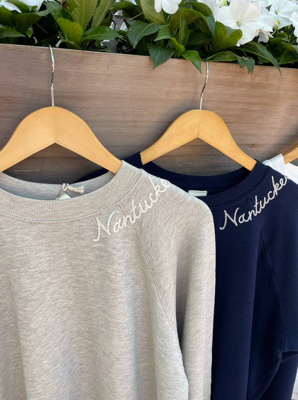 Get cozy in our exclusive "Nantucket" Sweatshirt. Made with preshrunk material, this lived-in crewneck features "Nantucket" stitched on the collar. Perfect for chilly days or lounging around.