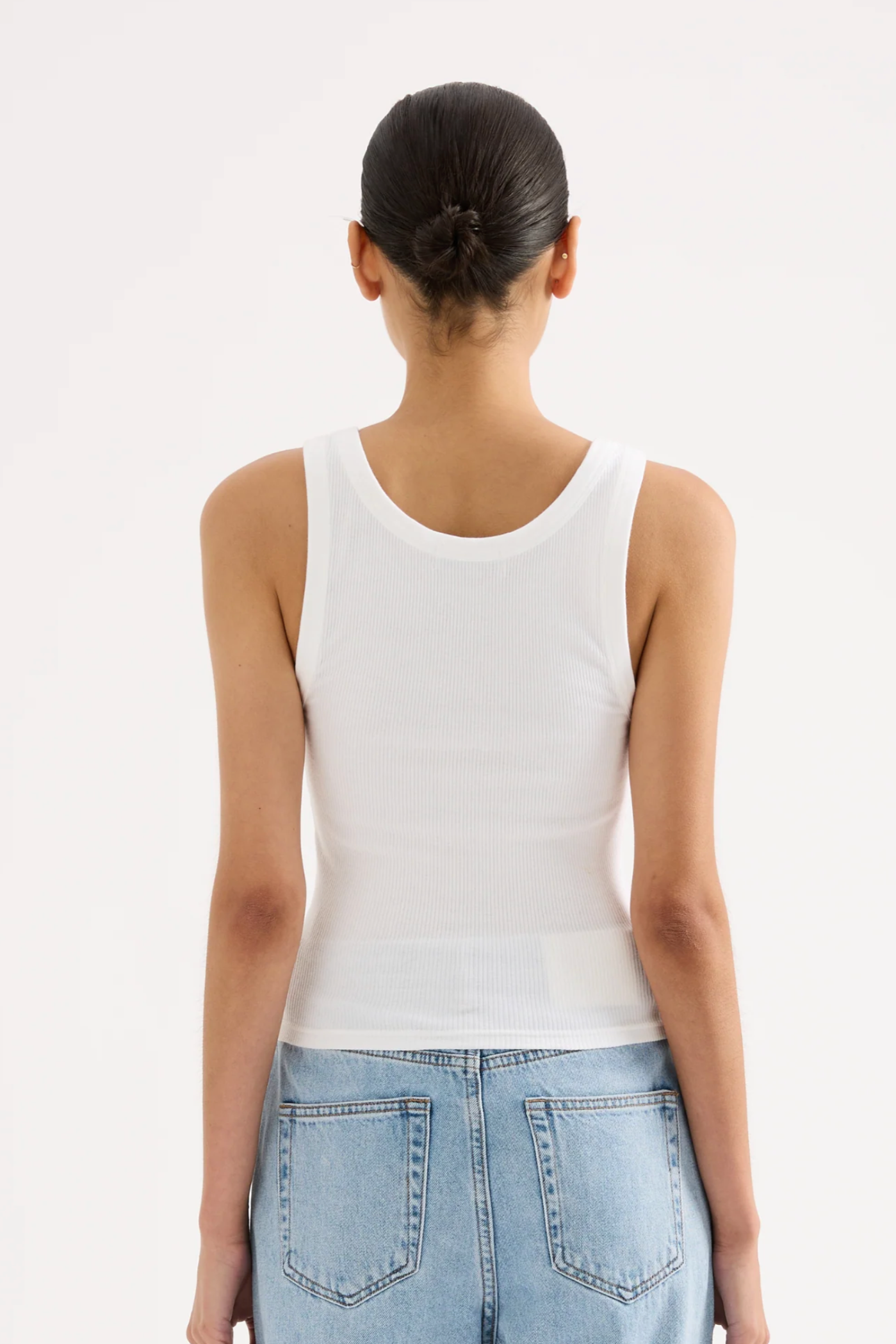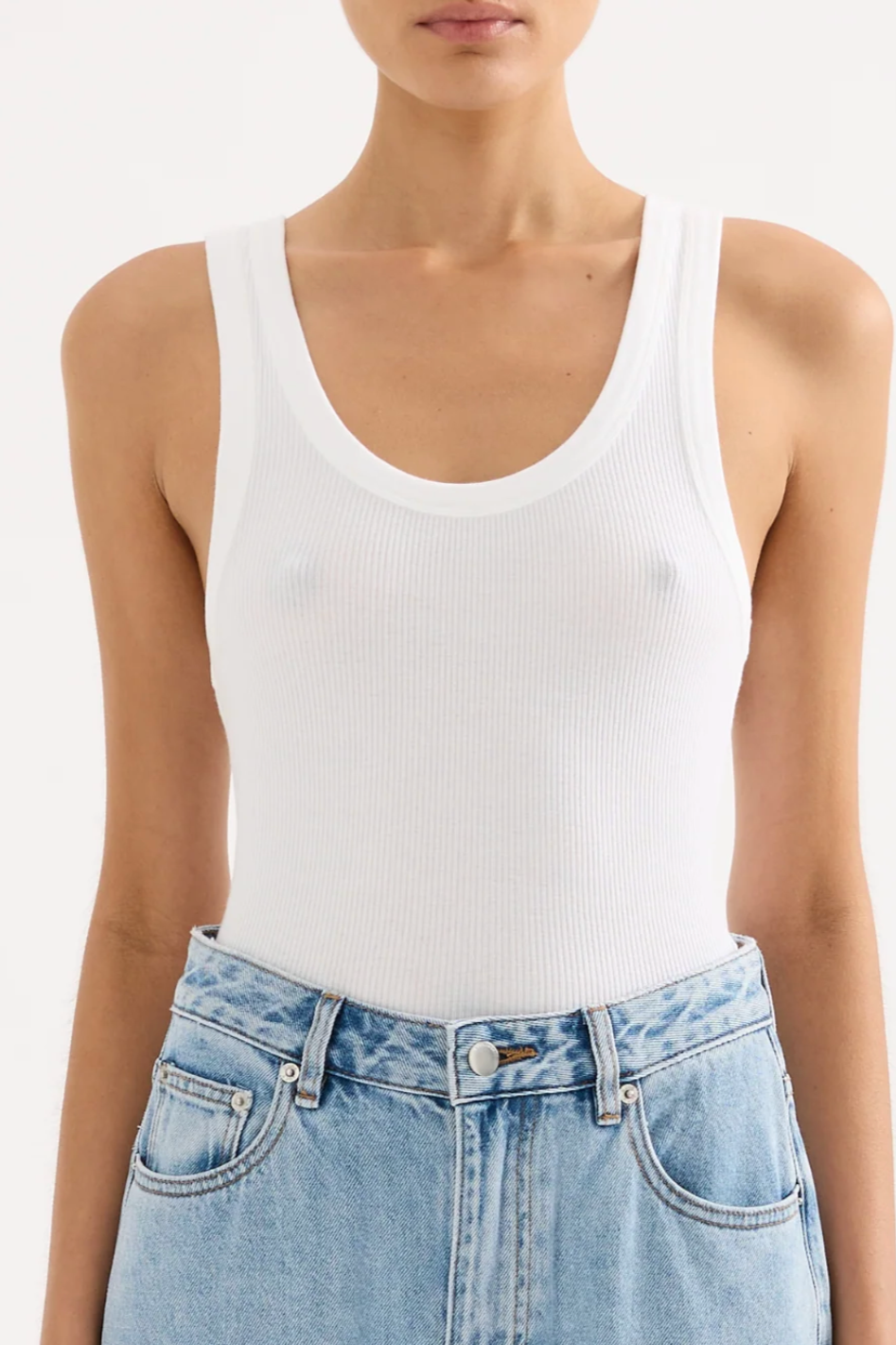The Organic Rib Singlet by Nude Lucy is a key piece to add to your basics wardrobe range. Made from high stretch quality fabric which allows for a figure hugging shape whilst still being breathable and lightweight. The silhouette is a classic slim fitting tank finishing on the hips. Features include thick straps and low scoop neckline.