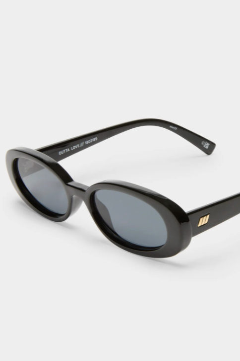 The OUTTA LOVE sunglasses feature a sleek, slim oval shape with subtle gold accents, offering a refined nod to ’90s style that enhances your look without overwhelming it.