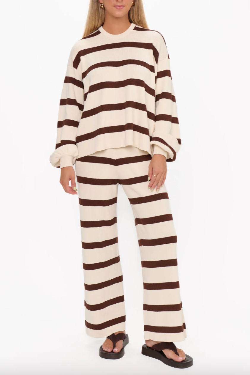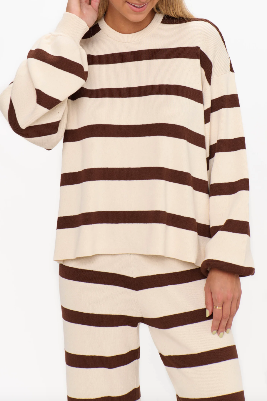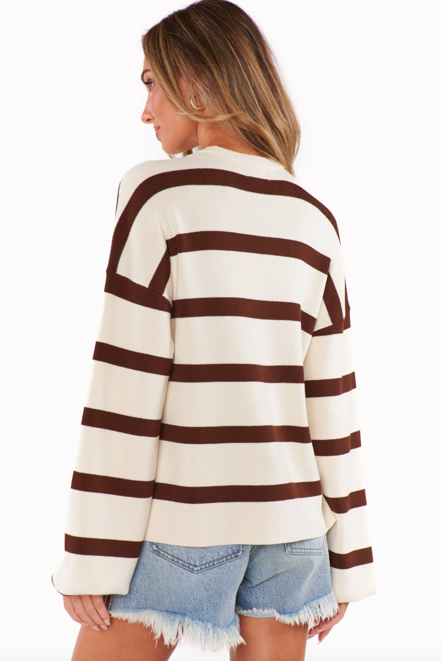 Who doesn't love a breezy beach day when you're prepared with the perfect sweater? This stripe knit sweater has cuffed sleeves and a crew neck, making it super easy to throw on over a 'kini or your favorite slouchy denim.