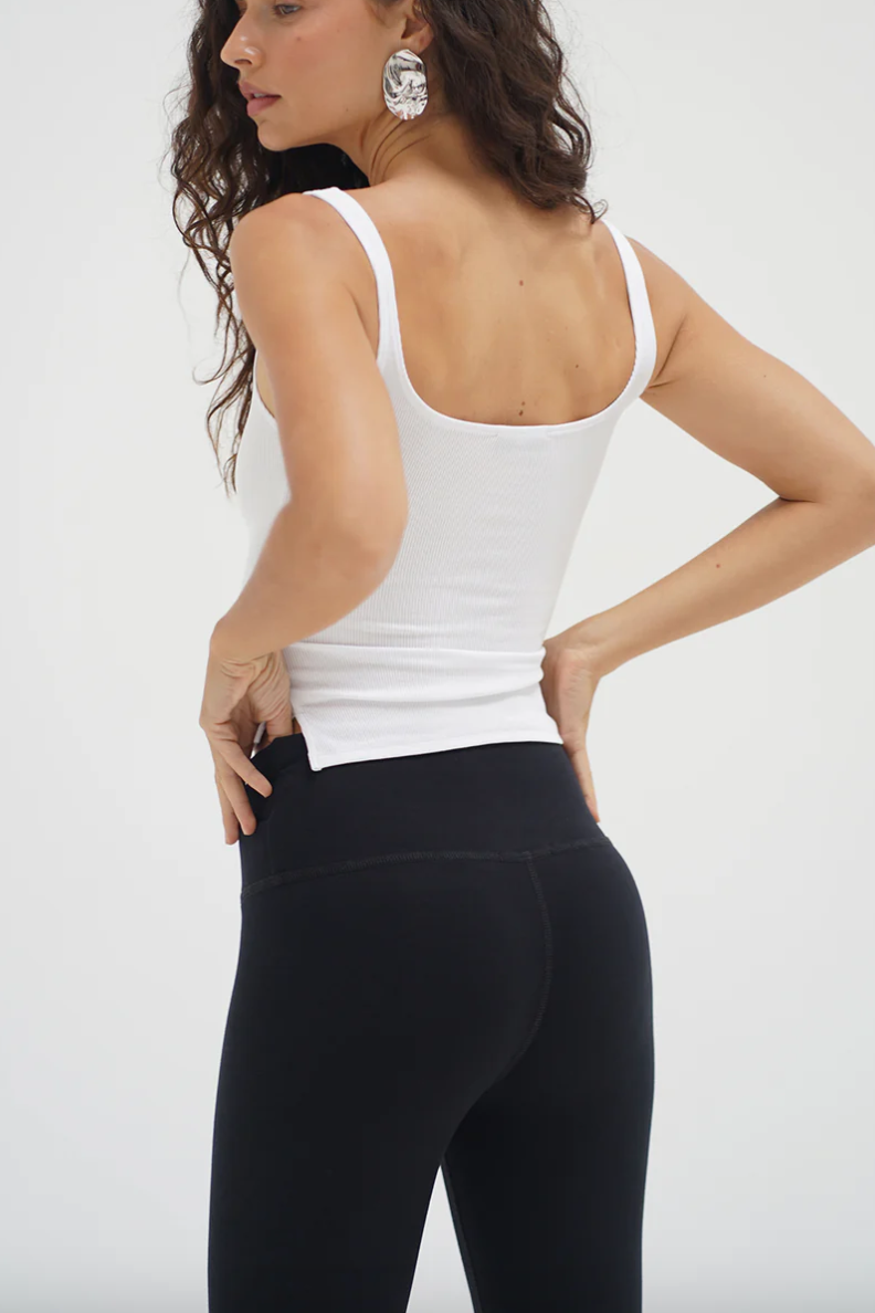 The LNA Essential Ribbed Scoop Tank is perfect for tossing on with jeans or layering. This tank fits close to the body and is made in our 2x1 rib fabric. The neckline is cut in a flattering on everyone, slightly squared scoop. Small side slights on each side add to this tanks great fit.