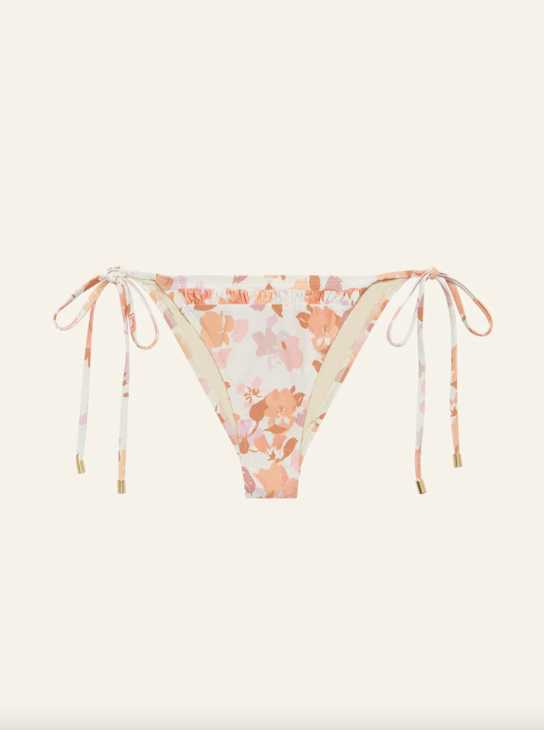 Designed in a quintessential peony silhouette, our Ruched Panel String Pant comes to life in a feminine leafy floral. With moderate coverage, premium gold hardware and adjustable side ties, enjoy swimwear that's made to last for seasons to come. Pair back to the Ruched Panel String Tri.