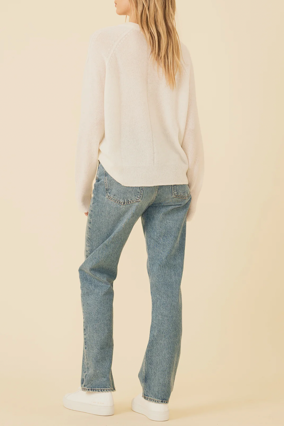 An essential lightweight crewneck in our loose knit cashmere, in a boxy and easy body and chunky stripes. Featuring our signature back detail seen on our Sloane styles.