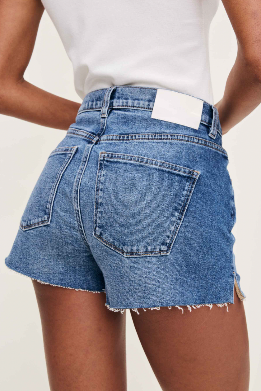 Zoie is a vintage mid rise short with a relaxed fit throughout and a small outseam slit.